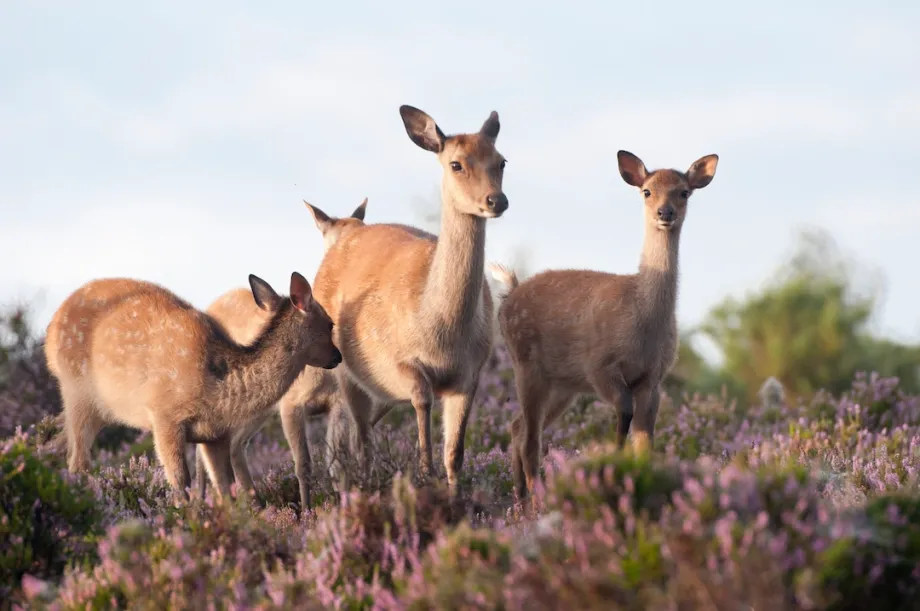 Fallow deer, medium-sized with distinctive white dappled spots, have an enchanting, almost fairy-tale appearance. The males, known for their striking palm-shaped antlers, produce deep groans during the rut, while females and fawns communicate with high-pitched bleats. Often associated with the beloved animated deer, Bambi, fallow deer are commonly found in parklands and woodlands, particularly across southern England, where they thrive. Their unique features and graceful presence make them a favourite sight for wildlife enthusiasts exploring the countryside.