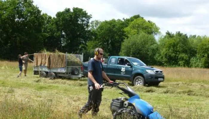 The preparation was done by the garden team and volunteers. Cutting the area and taking away the hay (part of which was done the traditional way with scythes!) Next came preparing the seed bed, scarifying the area to create bare ground to receive the Marden seeds. Lastly the green hay.