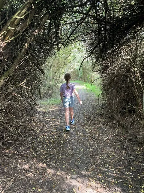 Paul's daughter walking through the woodland under growth at Holborough Marshes