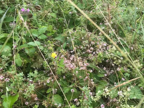 Scattered bushes may include red-berried hawthorn, guelder rose, dogwood (occasionally white-berried), and the purple-berried blackthorn and juniper as a low-growing shrub. Hawthorn and blackthorn provide shelter, nesting habitat, and berries for birds, as well as nectar for pollinators!