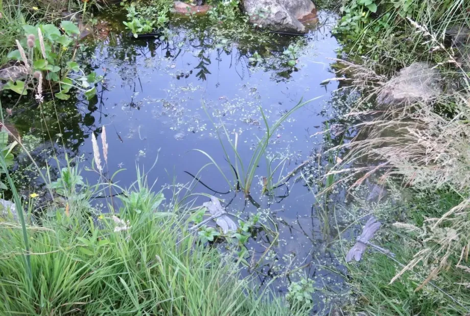 All ponds need a bit of maintenance to keep them healthy. Thin out vigorous water plants in late winter leaving enough for amphibians to spawn on. Wash removed vegetation in a bucket of rainwater and tip the water back into the pond. Leave removed vegetation loosely near the edge of the water so creatures can escape back to the pond. Try not to remove anything between spring and late autumn to avoid disturbing all the creatures in the pond.
