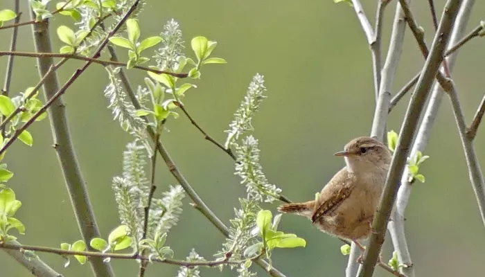 Snipe have been seen on the ground and linnets, buzzards, kestrels, overhead, The nightingale was heard very early this year, in early April. We are well into the breeding season for birds. A robin built a nest at the back of the potting bench just inside my greenhouse and parents are now flitting in and out feeding their brood. Thirsty plants at the far end of the greenhouse are surviving on very sporadic watering just for now. On the reserve, the even smaller wren, Troglodytes troglodytes, a year-round resident, nests closer to the ground. The male wren will have built up to a dozen domed nests for the female to choose from, that’s even more than the whitethroat. The wrens nests are all well hidden in a bank, hole in a tree or crevice, in open ground or woodland The female lines the chosen nest with whatever soft materials she finds, incubates the eggs alone for around two weeks, and alone feeds the fledglings on moth larvae, for nearly three weeks, before starting a second brood. Wrens use their long thin slightly curved bill to probe crevices in banks and walls for spiders and fly and insect larvae. Wrens are heard almost all year round, a vibrant loud warble and final trill, or a hard tic-tic-tic call note, sung from a prominent perch or from a hidden position. The sweet clarity of the call, appearing from nowhere, lights up a grey winter’s day.