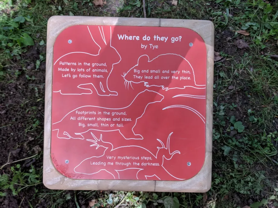 Hearing their excitement each time they found another section of the trail and witnessing the positive effects on health and wellbeing of simply being outside with nature. Seeing the shocked expression on a local dog’s face at his regular woodland walk suddenly being filled with 24 excited children and the comments from his owner about how much she has enjoyed reading all the poems on their daily lunchtime walk.