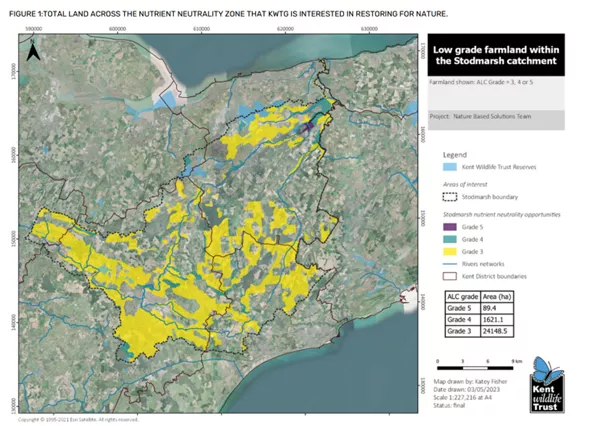 Map showing low grade farmland (much of it Grade 3) in the Stour catchment that can be used in the nutrient mitigation scheme ©Katey Fisher