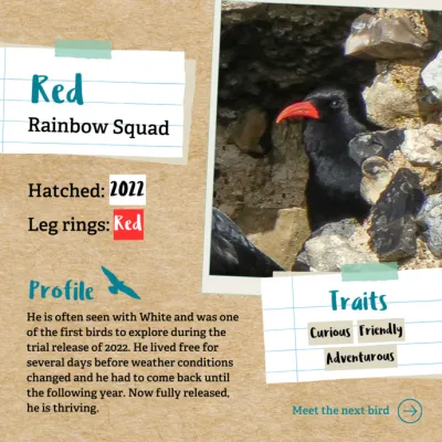 Get personal with our chough project and learn about the individual chough that are part of the cohort of chicks being released in Dover.