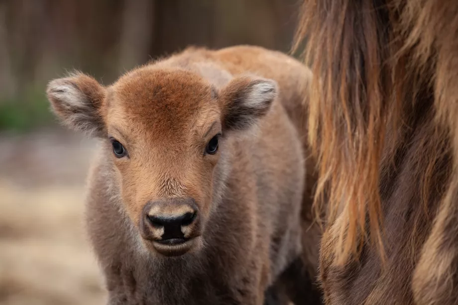 The females had stuck together from day one, and Ranger Tom Gibbs decided to track the lone bison to conduct a welfare check. He said: “I tracked the young female to a quiet corner of the woodland and was relieved to find her apparently well and eating some vegetation. As I came closer, I had to double-take as a little head popped out from behind her and I quickly realised she had given birth. My heart was racing, and I stepped back and spent some time observing them.