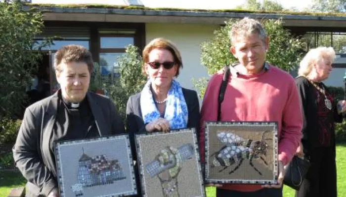 The Scheme’s three themes have been captured in new mosaic plaques created at a community event in Dymchurch. They were especially prepared for the 30th September celebration, being brought to the event from three locations in and around Romney Marsh.