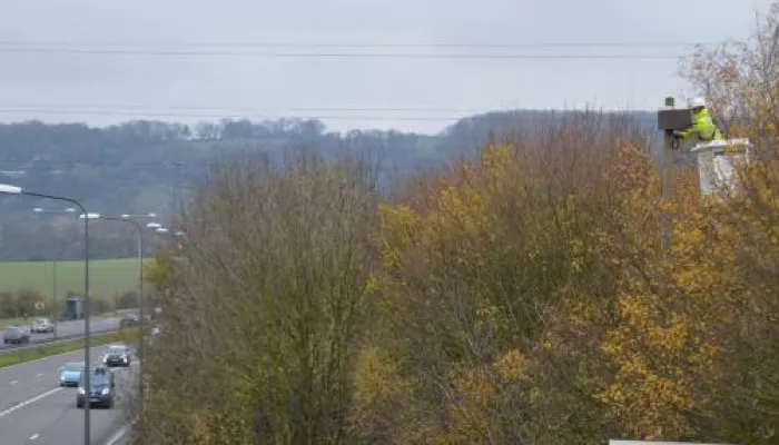 A new kestrel nest box with inbuilt camera has been fitted at Kent Wildlife Trust’s nature park and visitor centre on Blue Bell Hill, near Maidstone. The work, which should have been completed earlier this year, was put on hold when a pair of jackdaws unexpectedly took up residence in the old box!