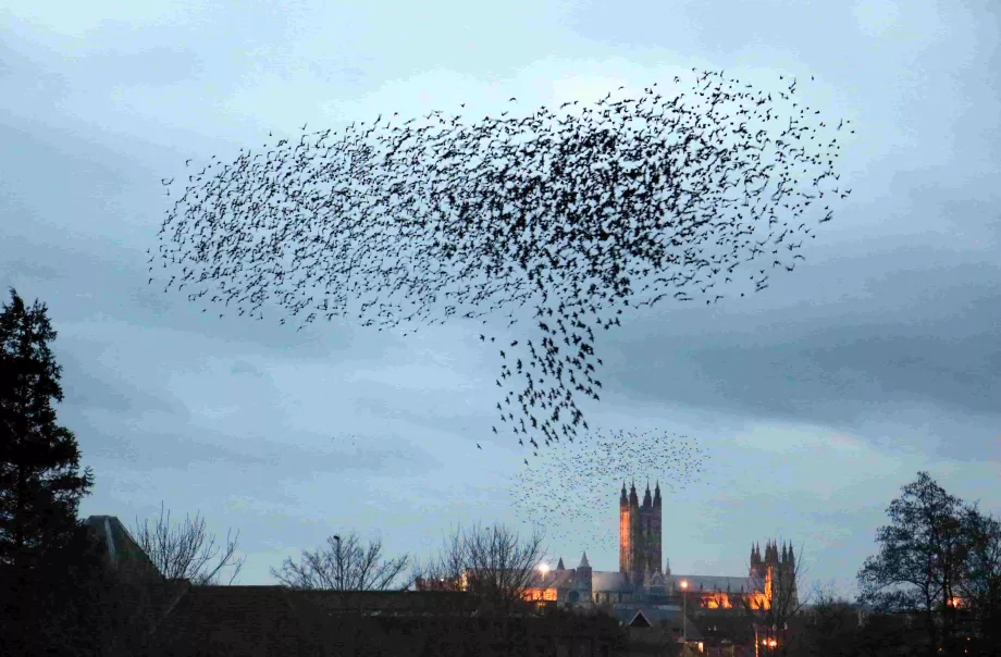Jim Higham's photograph of a starling murmuration over Canterbury. Jim Higham