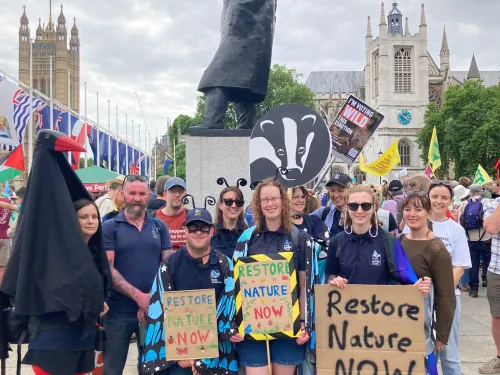Kent groups amongst over 60,000 people who marched in London calling on next government to “Restore Nature Now” as students and supporters in Ramsgate hold a funeral for nature.
