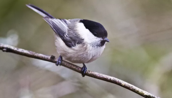 The willow tit lives in wet woodland and willow carr in England, Wales and southern Scotland. It is very similar to the marsh tit, but has a distinctive pale panel on its wings.