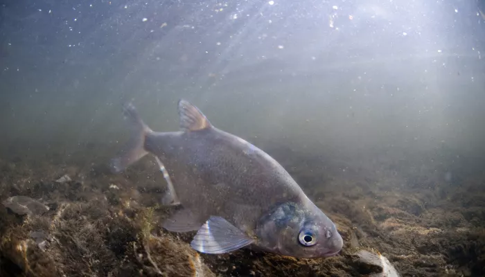 The bream is a medium-sized fish and a member of the carp family, so displays the typical carp shape. It is a bottom-feeding fish that preys on worms, snails and pea mussels. It lives in large ponds, lakes and slow-moving rivers where it congregates in quite large shoals.