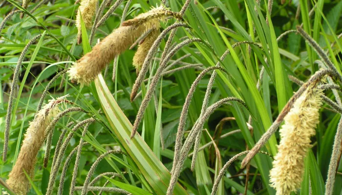 As its name suggests, pendulous sedge has drooping form with long, nodding flower spikes that give it an attractive and soft look. It can be found in wet woodlands and along riversides.