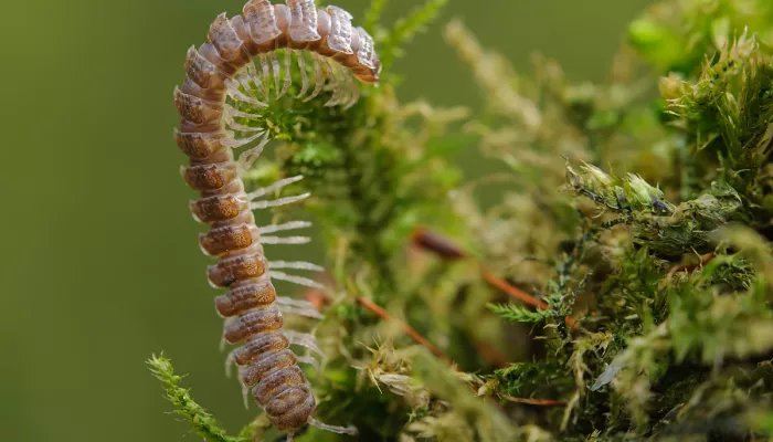Found in compost heaps and under stones in gardens, the Flat-backed millipede is a common minibeast. Despite its name, it only has about 40 legs. It is an important recycler of nutrients, feeding on decaying matter.