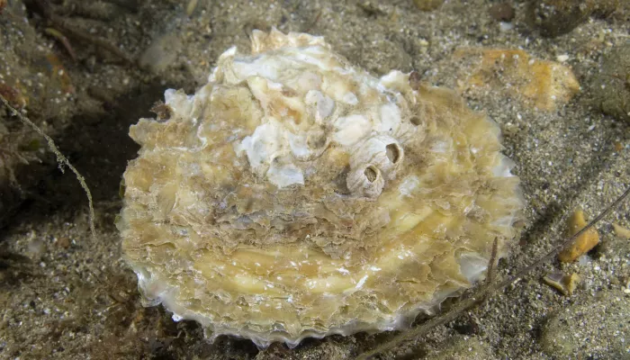 Common oysters, also known as Native oysters, live on the seabed in shallow coastal waters and estuaries and will form dense beds where conditions are favourable. Oysters are filter feeders, filtering plankton and detritus from the surrounding water column. They are a type of bivalve (meaning two shells); but their 2 shells are not identical. One shell is rounded and the other is flat, like a lid. Oysters start life as males, but can change sex regularly throughout their lives depending on the temperature of the water. Native Oysters don't produce commercially viable pearls.
