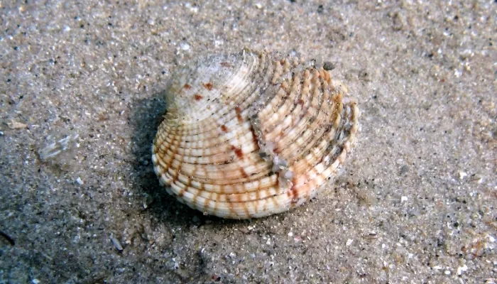 The warty venus is a medium-sized clam-like shell, rounded and domed, and covered with bumpy, rough concentric ridges, living up to its common name. The warty venus lives on sand and gravel seabeds from the intertidal down to 100m. Reproduction takes place at the beginning of summer (May to June).