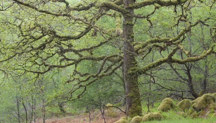 The Sessile oak is a tall tree that can mainly be found in semi-natural woodlands, especially in the north and west of the UK. It is so-named because its acorns are not held on stalks like those of the English (Pedunculate) oak, but are attached directly to the outer twigs. It can form quite dense, single-species woodlands when left to grow, but is not as ubiquitous as the English Oak in the rest of the countryside. Sessile oak timber is not as popular as that of English Oak, but is used for barrel- and cask-making, and gives wine and spirits a particular flavour.
