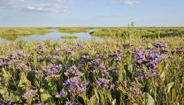 Common sea-lavender grows in muddy, salty pools or saltmarshes along the coast. Its flowers range in colour from blue through to lilac and pink, and can often be seen densely carpeting the ground from July to October. Garden varieties of this plant are popular with flower arrangers as the flowers can be dried and keep their shape and colour.