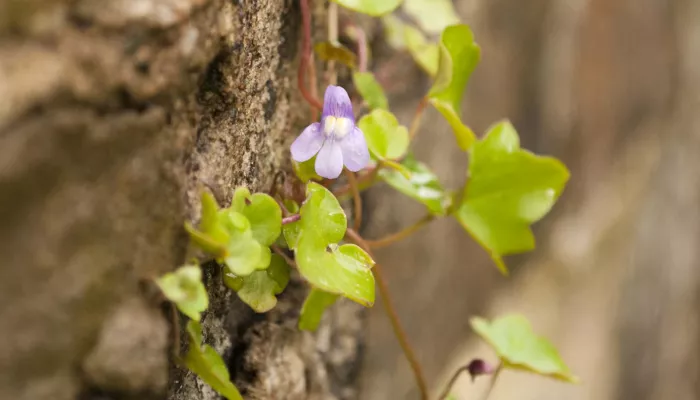 Ivy-leaved toadflax is not a native species to the UK, but is now considered naturalised, having been here for several hundred years. It is a small, perennial herb that is often found growing in cracks in old walls and pavements, in rocky places and even on single beaches; it can form large, low-growing patches.Its tiny, mauve flowers resemble those of a snapdragon.