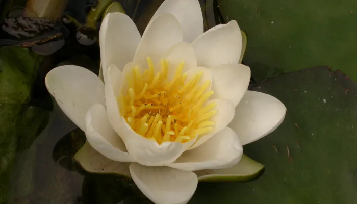 The White water-lily is a common plant of still or slow-moving water and grows in ponds, lakes, canals and ditches. It has large, lily-pad leaves that are up to 30cm across, and grows in water up to 5m deep; the leaves and flowers float at the surface, while the rest of the plant is submerged, growing from the mud at the bottom. It flowers during the summer, from June to August, the blooms opening up in the sunshine.Water-lilies are good plants to add to a wildlife-friendly pond, providing shelter for frogs and early nectar for insects.