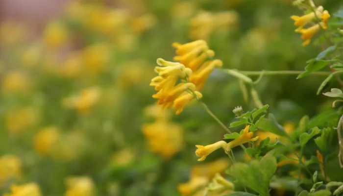 Yellow corydalis can often be found growing out of cracks in old walls and pavements.