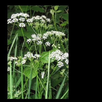 As the path opens out at the woodland edge we notice, within the fading bluebells, some fine feathery leaves, some topped with new clusters of tiny white flowers, and identify it as Pignut. It is a member of the carrot family, and the roots carry little brown tubers. These are edible and once widely gathered by country folk. However, if you are in the mood for foraging, remember this family of plants contain some of the most poisonous in the country.