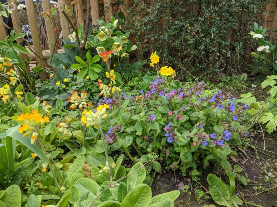 Pulmonaria, an excellent early source of pollen and nectar, has done unusually well in our garden this year - P Brook