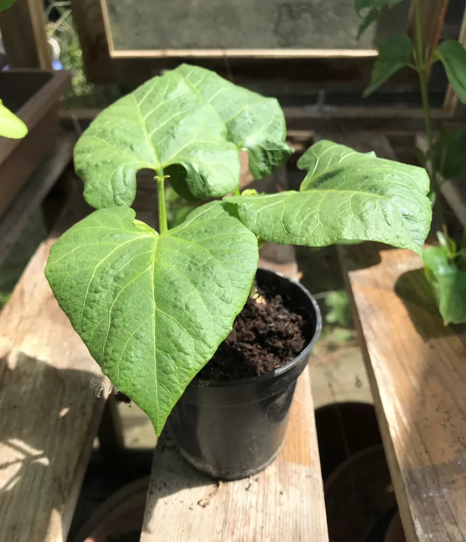 Runner bean plant which will be at least a foot tall before we risk planting it at the allotment - P Brook