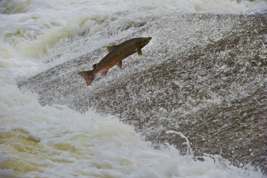 Atlantic salmon play a crucial role as a keystone species, meaning they're vital to the habitats in which they live. As both predator and prey, and through their behaviours, they have a huge impact on the health of a river system and its residents. Their spawning behaviours, for example - creating areas in which to bed the eggs - are a part of maintaining this balance. Their migratory behaviour, too, helps with the transferrence of essential nutrients from the ocean to freshwater exosystems; in turn, this improves the habitat for various species of insects, algae, and fish.