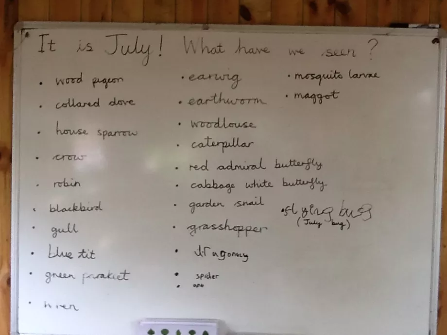 All of our wildlife sightings are recorded month by month, on a large board in our bespoke wooden den. This means that everyone in our school community can keep up to date with the variety of wildlife which has been seen. This information is also shared via the Woodland School blog on our school website. We also hold events in which parents are invited to come and join us for a session.