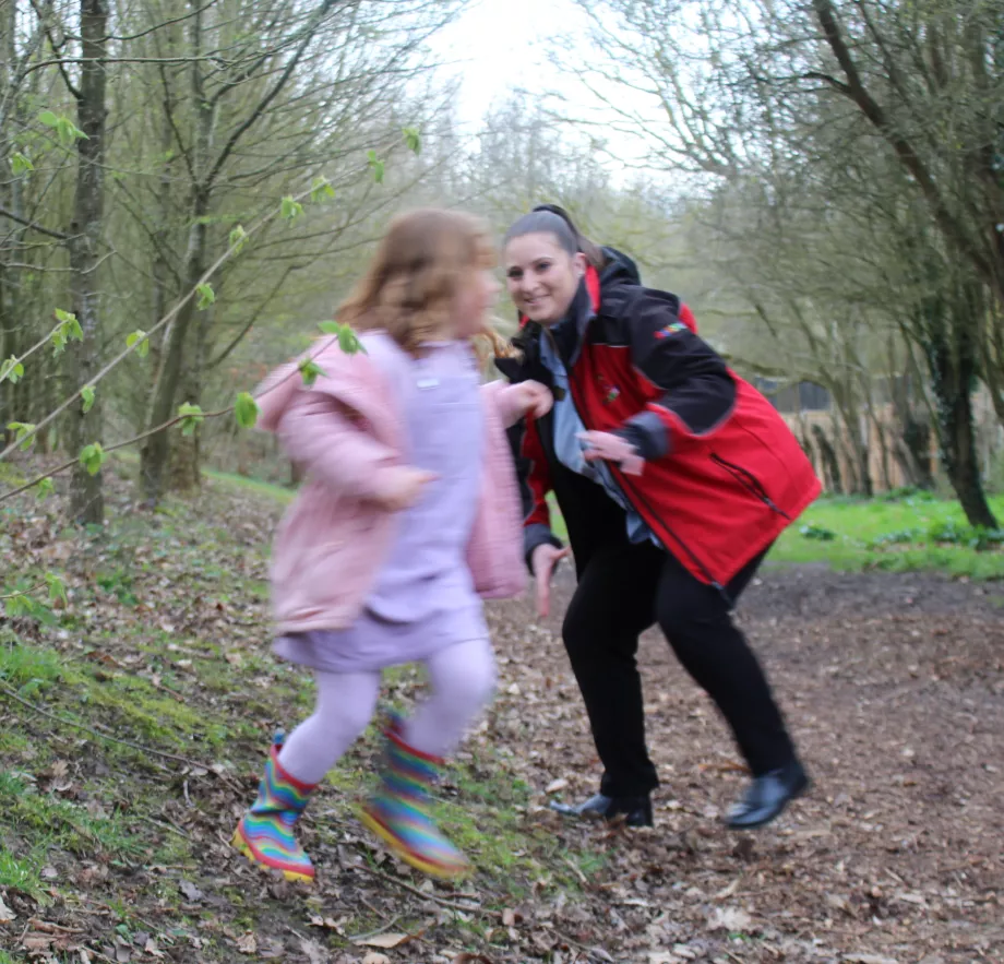 Pennies Day Nurseries nature heroes child playing in woodland