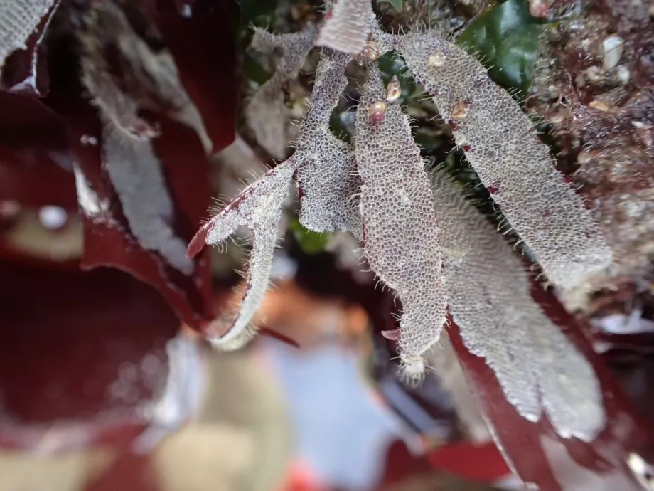 Bryozoans are tiny aquatic invertebrates that form colonies made up of lots of connected ‘boxes’ called zooids. At first glance they can often be mistaken for a rather dull coloured piece of seaweed as several have a branching, or leaf-like appearance, but if you look very closely, you will be able to see the tiny boxes in which the individuals live. Bryozoans are filter feeders, using their tiny, hairy tentacles to waft bacteria and single-celled algae into their mouth; and they in turn are fed on by other marine animals, such as sea slugs.