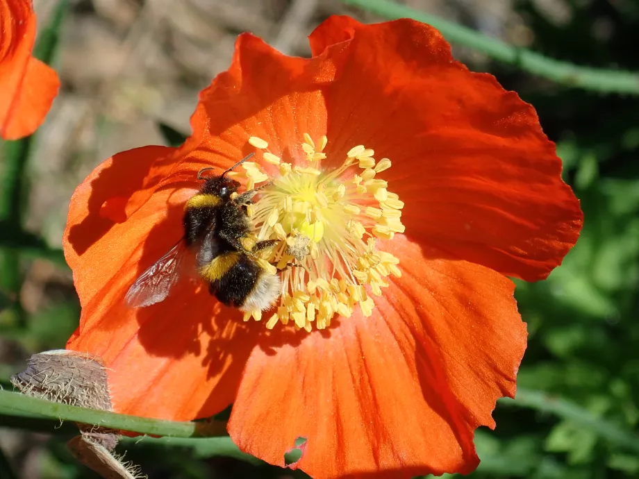 All the plants we have mentioned so far are on the Royal Horticultural Society’s Plants for Pollinators list. We cannot find Welsh poppies on the list but in our garden, they seem to be very popular with bees. We love this plant because its beautiful flowers illuminate dry and dark corners where nothing else will grow, and it also copes with being baked in our sunniest borders.