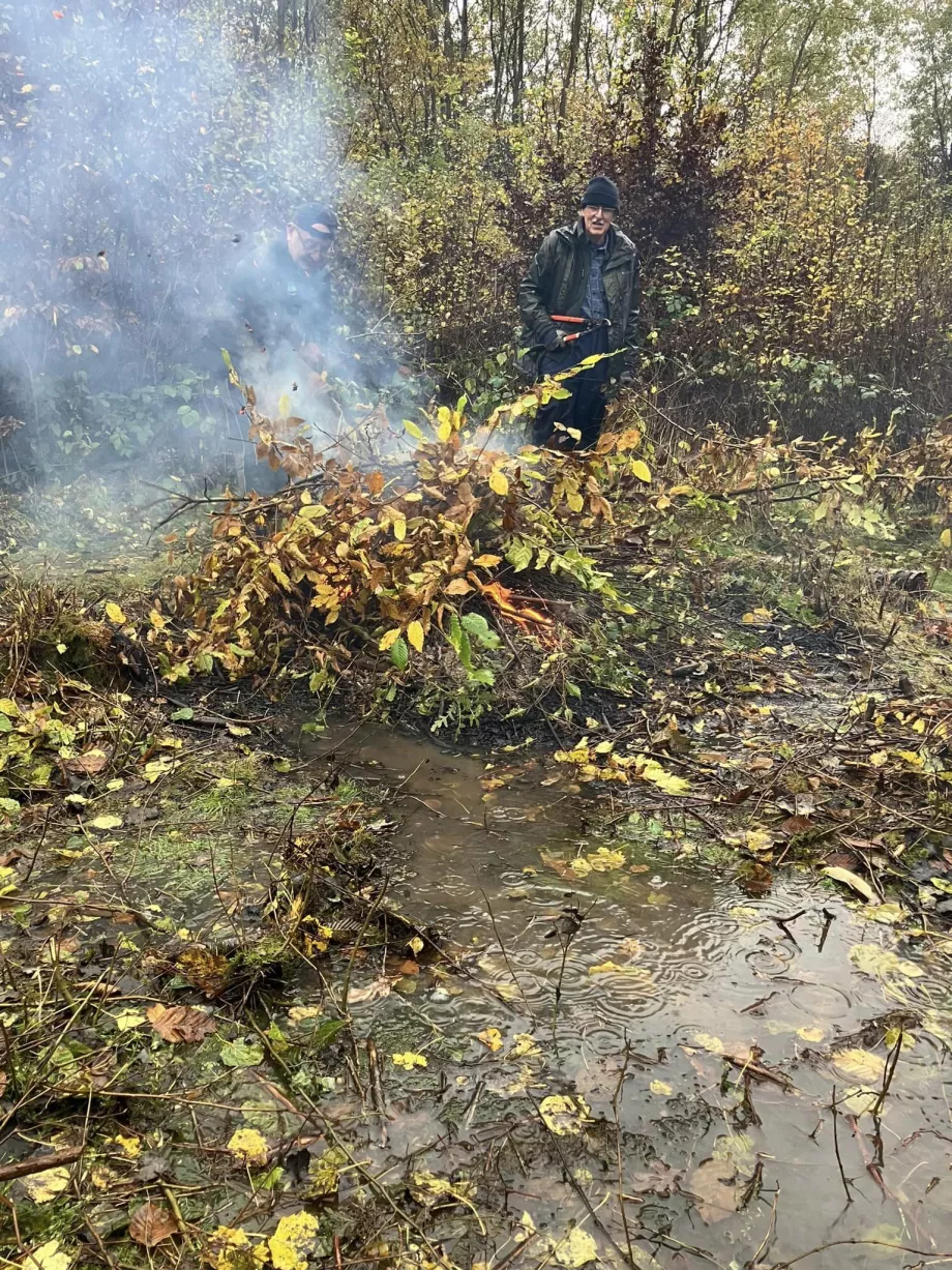 Hats off to the indomitable Ashford volunteers who spent this very wet 14th November working at Stone Wood until 16mm of rain fell in three hours, encircling their bonfire with a moat then swamping it. Paths on Hothfield Heathlands are already muddy so the temptation is to walk along the verges and create more mud and wider paths. Kent Wildlife Trust encourages everyone to wear the appropriate footwear (with perhaps a walking pole to help with balance) and to keep to the actual paths, enjoying the mud and puddles and helping to protect the fragile plants that grow on path verges.