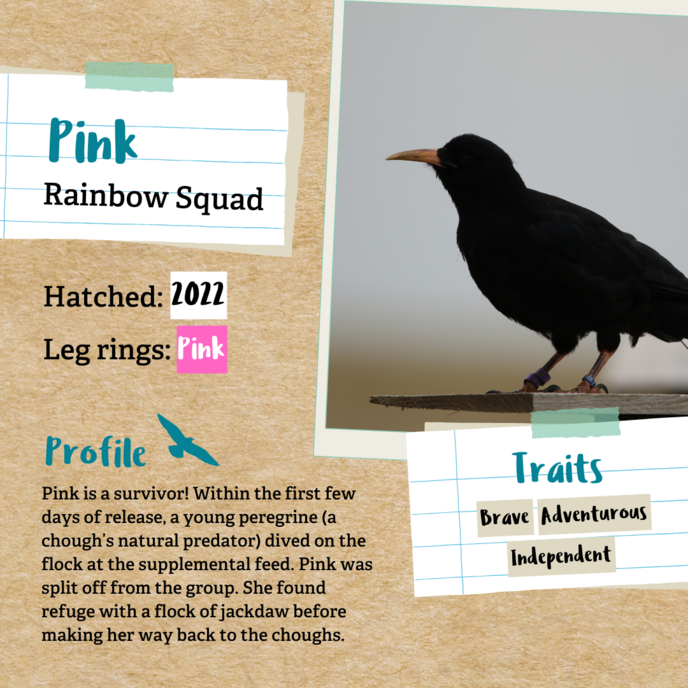 Get personal with our chough project and learn about the individual chough that are part of the cohort of chicks being released in Dover.