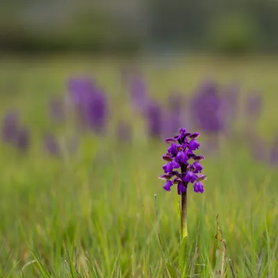 Green-winged orchid in a field