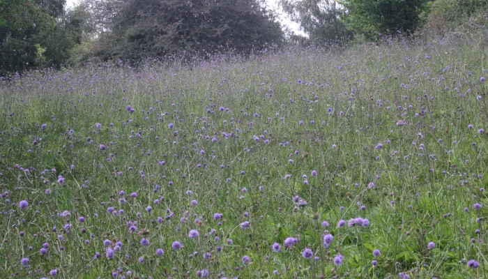 A small secluded valley with marsh and neutral grassland and ancient woodland. The northern-most field has abundant anthills and the middle field in August, has one of the largest and most spectacular displays of devils-bit scabious in the county.