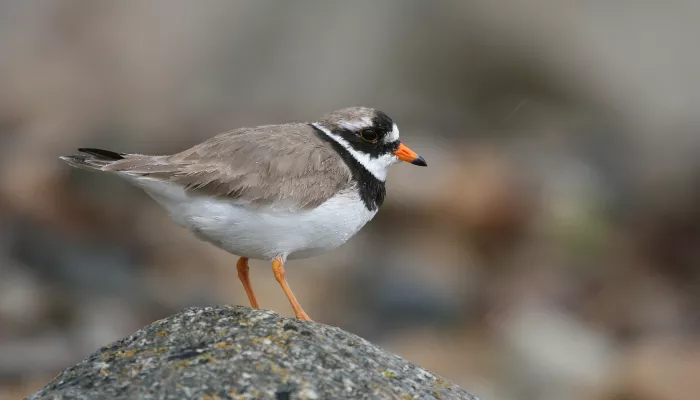 The ringed plover is a small wader that nests around the coast, flooded gravel pits and reservoirs. It is similar to the little ringed plover, but is a little larger, has an orange bill and legs, and doesn't have a yellow ring around its eye.