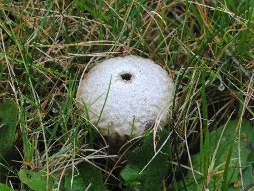 This football-sized fungus can be seen in autumn, sometimes growing on grass verges.