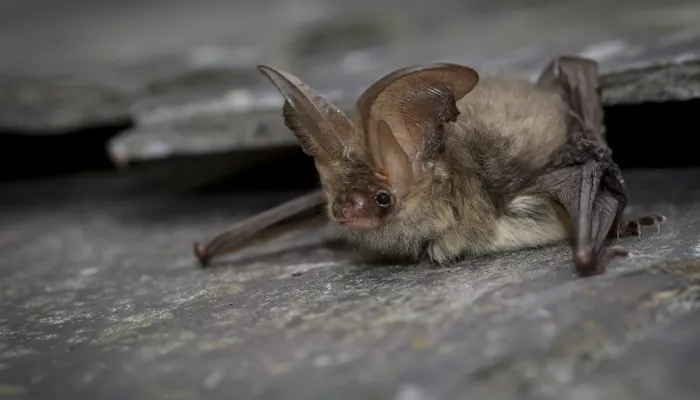 The brown long-eared bat is known as the 'whispering bat', because its voice is very quiet - no need to shout when you have such big ears! While at rest, it tends to either curl its ears back or tuck them under its wings.