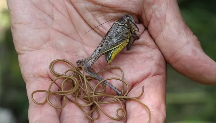 This leads to the most famous trait of some species of horsehair worms, the ability to highjack the terrestrial host’s nervous system, altering their behaviour to make them actively seek out water. Spinochordodes tellinii and paragordius tricuspidatus species achieve this by causing grasshopper and crickets to jump into waterbodies drowning themselves when the horsehair worm reaches its adult stage. Once it encounters water, the horsehair worm burrows from the body to return to water to breed, killing the host if not drowned already.