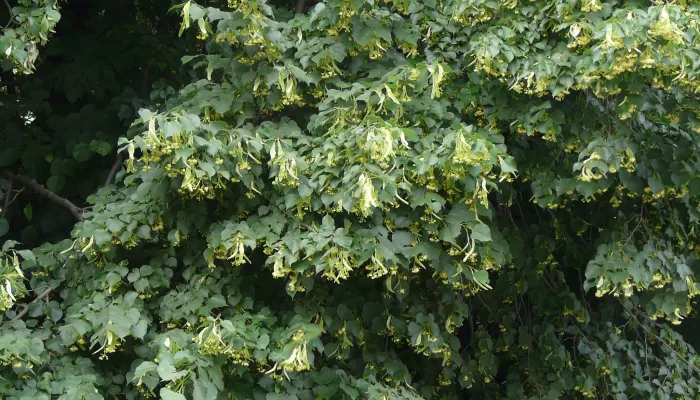 The Small-leaved lime has heart-shaped leaves; yellow-green, five-petalled flowers; and small, oval fruits with pointed tips. The three lime trees of the UK are difficult to tell apart. The Small-leaved lime lives up to its name: it has smaller leaves than the Large-leaved and Common limes, with patches of tiny, rusty-orange hairs by the veins on their undersides.