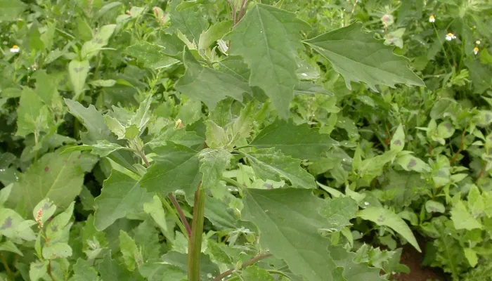 Fat hen is an upright plant with matt green, diamond-shaped leaves and spikes of small, white flowers. The whole plant tends to be covered in a white, mealy substance.