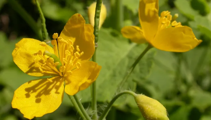 The distinctive orange sap of Greater celandine was historically used as a herbal remedy for warts.