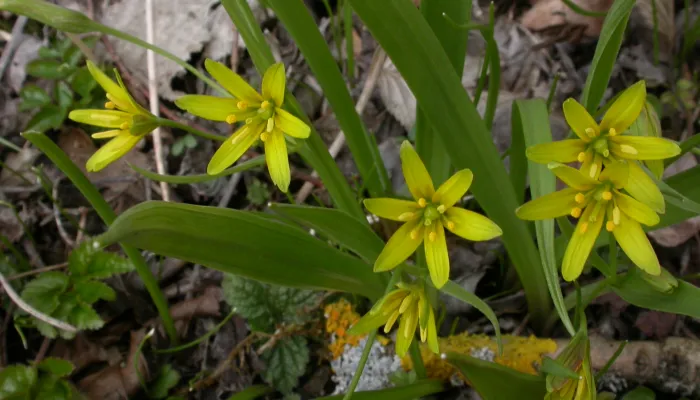 As its name suggests, Yellow star-of-Bethlehem is a golden-yellow, star-like flower that can be found growing in woodland on basic soils. Although it is rare, it can be very abundant where it does occur. It grows from a bulb, which waits dormant underground until spring. As it pokes up through the soil, it can easily be 'lost' to the eye among Lesser celandine and other spring woodland plants.